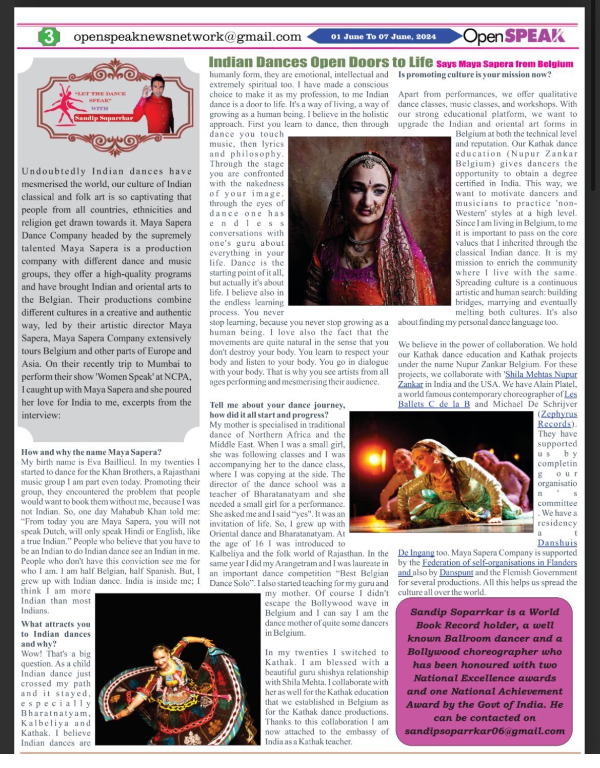 Maya Sapera was interviewed by Sandip Soparrkar, a professional dancer and a columnist who traveled the word with various dance projects and won numerous prices. In his interview with Maya Sapera he asked about her dance journey. Here you can find excerpts from the interview!